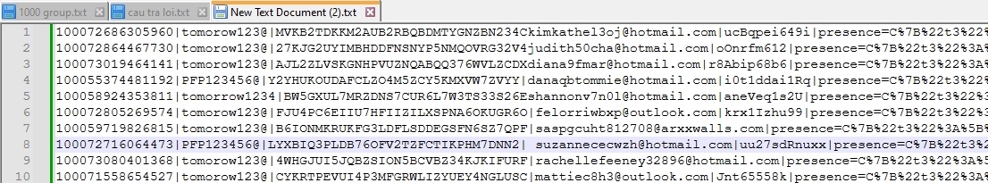 user|pass|2FA|mail|pass mail|cookie ( nếu không có mail|pass mail cũng không sao ).