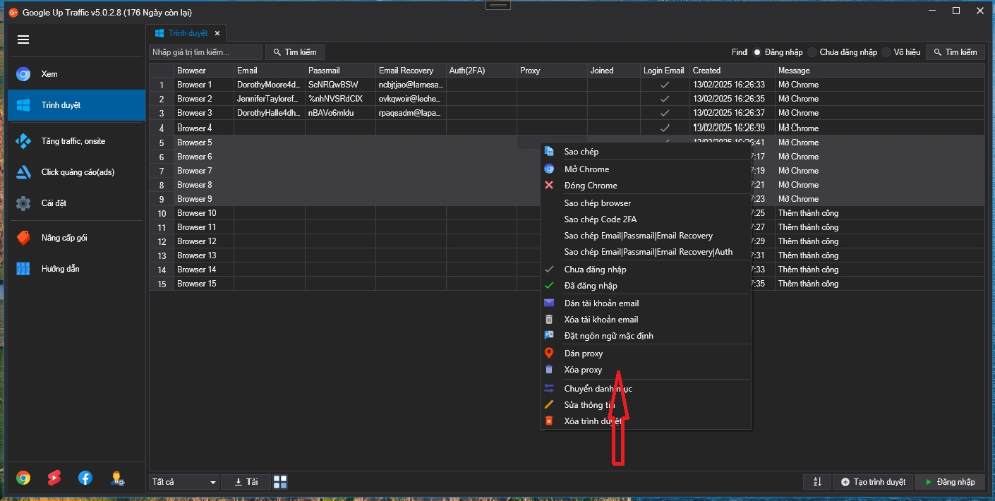 Chọn vào các trình duyệt đang muốn gán proxy và chuột phải, sau đó chọn tiếp vào "Dán proxy"