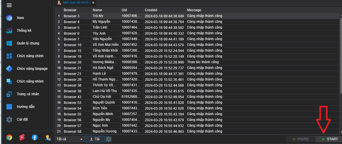 - Trang : gán id Fanpage đang muốn chạy vào ô.