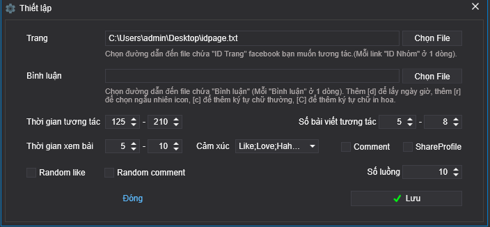 \- Số bài viết tương tác : số bài viết muốn tương tác trên page đang cài đặt.
