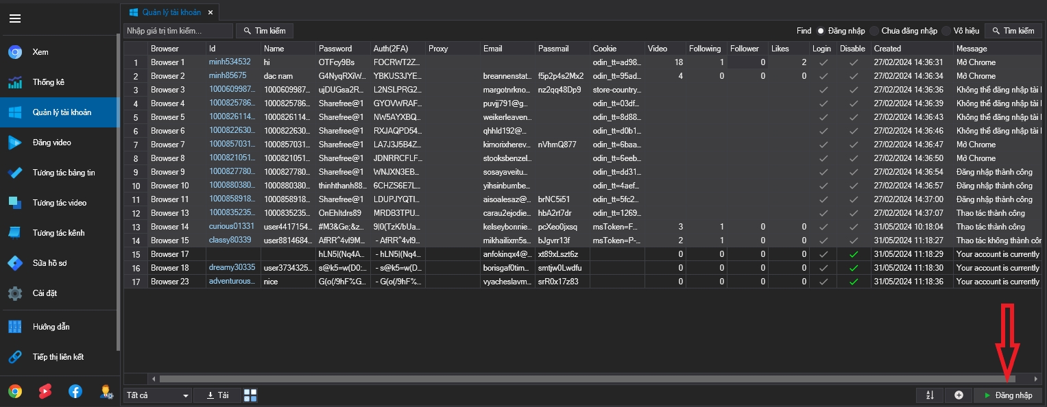 Chọn các tài khoản muốn đăng nhập và chọn tiếp vào ô đăng nhập bên dưới cùng góc tay phải để chạy tiến trình đăng nhập.