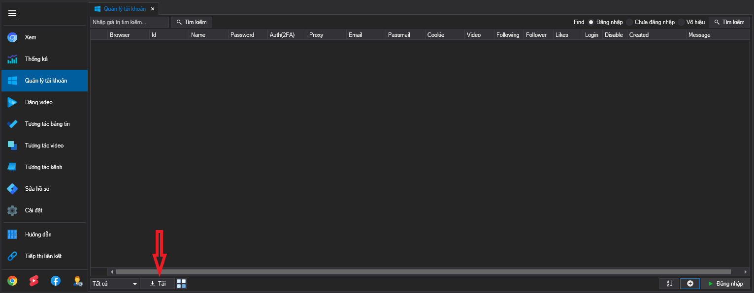 Chọn vào Tải để load toàn bộ tài khoản hiện có.