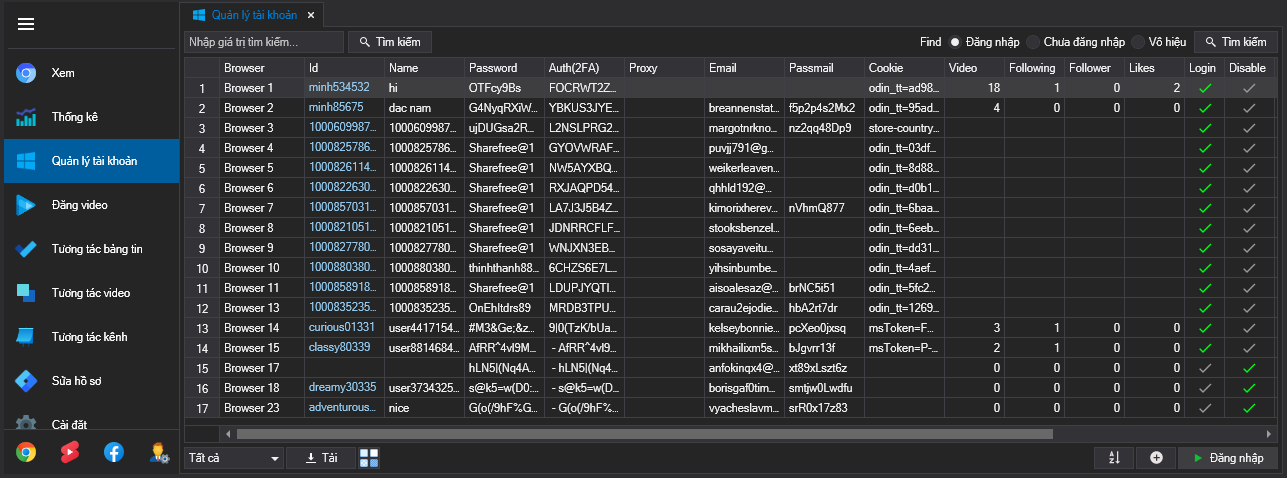 Đăng nhập được bằng cooki, khi thêm vào phần mềm thì không cần đăng nhập lại nữa.