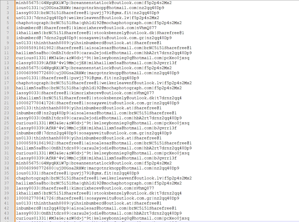 Phần mềm hỗ trợ nhiều định dạng cho các tài khoản như: "id|pass|mail|passmail", "user|pass|mail|passmail", "mail|passmail|user|pass", "mail|passmail|pass|cookies"....