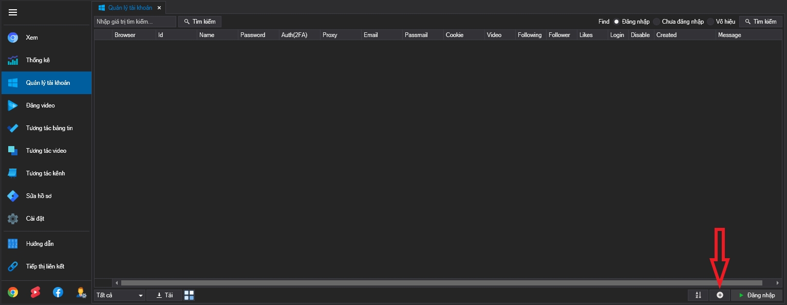 Mỗi tài khoản một dòng, tài khoản đã có ở trên phần mềm thì sẽ không được thêm vào nữa.