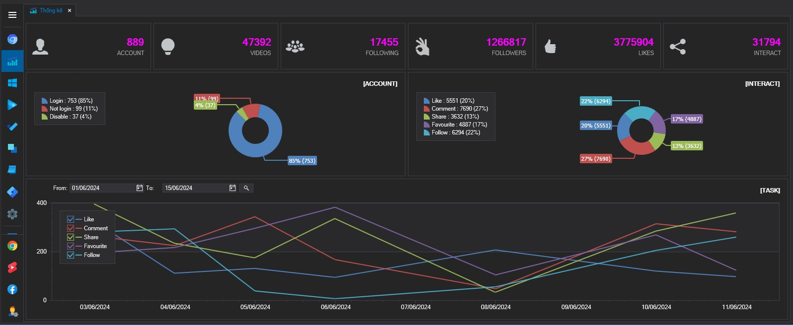 Xem được lượng tương tác của các tài khoản như like, comment, share, follow, repost
